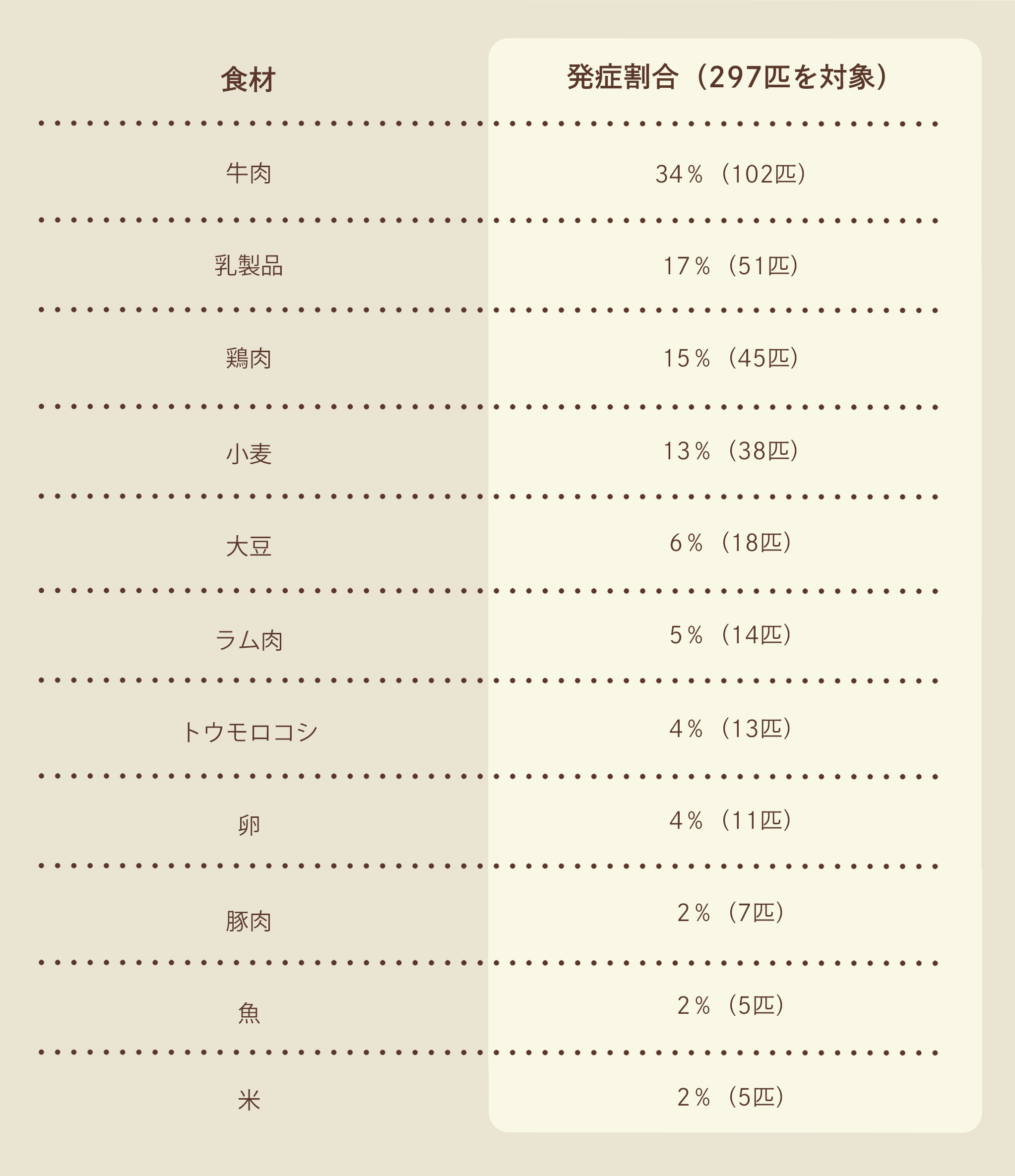 どの食材でアレルギーを起こすかは、犬によって異なります。